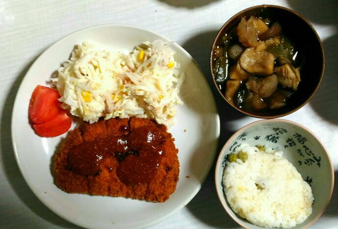 ソースが足りなかったのですが、ケチャップとウスターソースとゴマで不足分を補う。