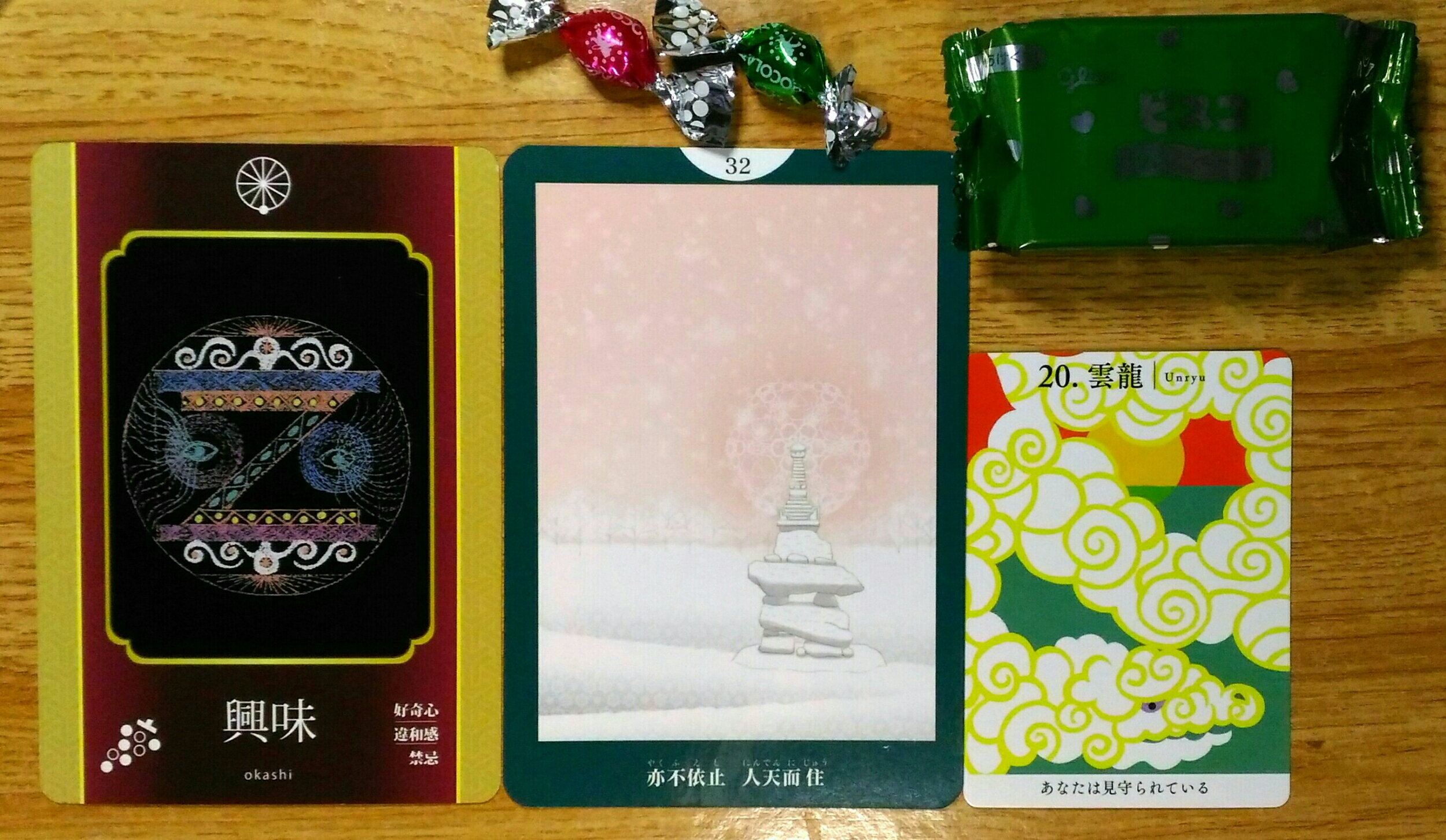 日本の神仏カードの方は、物語カードが一枚紛れ込んでいた上、それを引いてしまうという