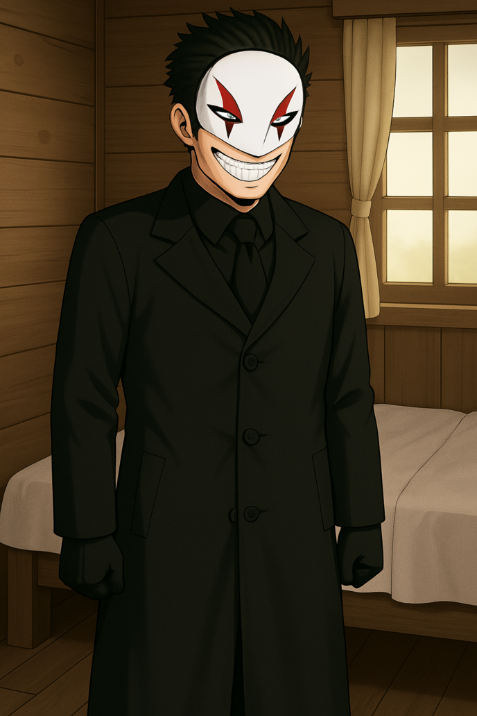 そこには顔の上半だけを隠した謎の仮面を被った男がいる。