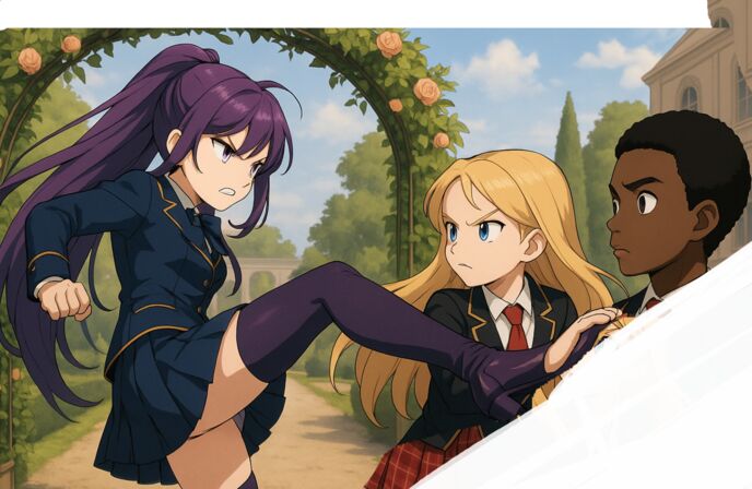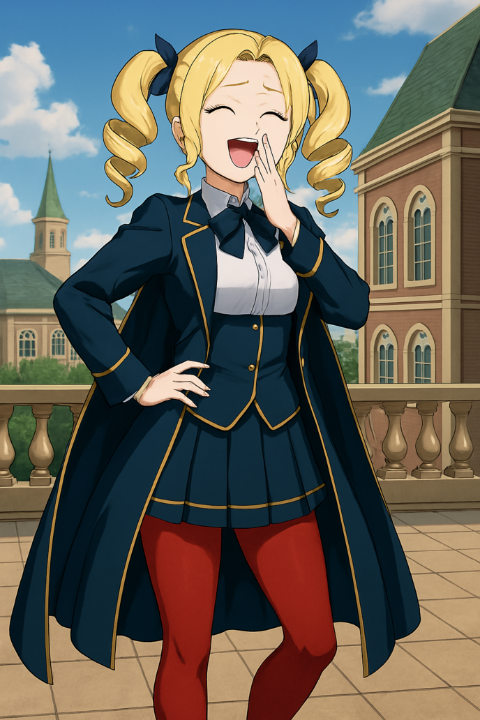 「お~ほほほ!それですわねーー、フェクモ少年!何を隠そう、わたくしは常にオードリーと心置きなく戦えたり、実力を競い合う一環で決闘を通していつも争ってきた仲ですわよーー!(まあ、何十回の決闘を経ても一度も勝ったことないけれど、むき~~~!)ですから、貴方こそ何なんですのーーー!?わたくしが今年度こそあのすかした顔してたオードリーにようやく一矢報いるかと思ってたところ、いきなり南方から編入してきて横から獲物を搔っ攫ったフェクモ人がいたと聞いたから不遇極まりないことですわ~~!」