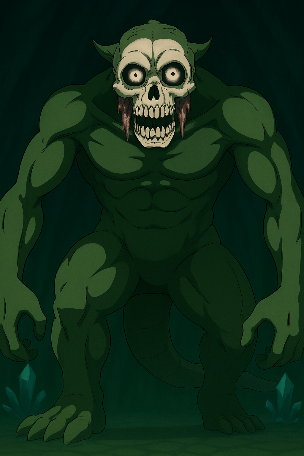 それも腕が四本で、身体中が全体で緑色で統一され、足は太くて甲羅がつきそうな堅さを持ちそうで、そして、何よりも怖いのがその頭と顔の方。