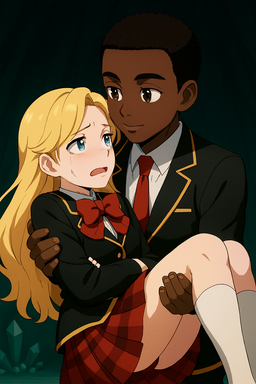 腕の中にいるあたくしが助けてくれた恩人の顔を見上げると、声から予想した通りに、『彼』があたくしに向けて、そのダークチョコレート肌がした顔に笑みを浮かべて、柔らかい表情で聞いてきた、