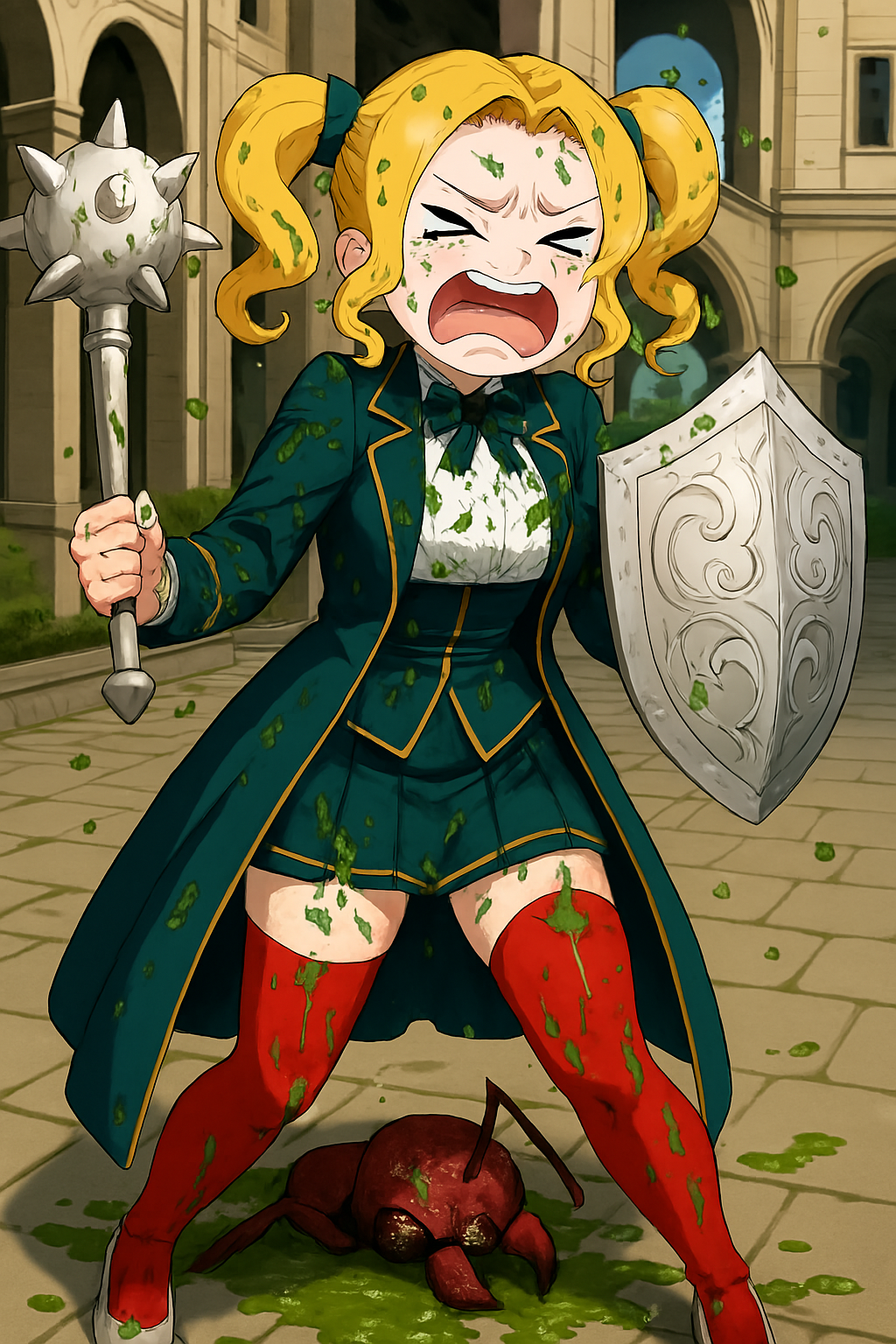 クイーン・アントの頭部をわたくしの電光石火なスピードで振り下ろした槌矛で力強く撃撲し、衝撃で甲羅が破壊され中身の肉片と緑色の血までもが噴き出して、って~!?
