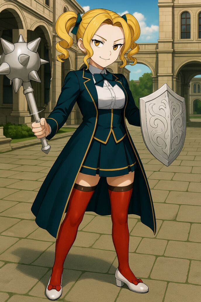さっきの掛け声を唱えた後、強烈な真っ白い光がわたくしを包み込んでから、次には右手に白い色の槌矛が顕現され、そして逆の手には文様意匠が刻まれてる丈夫な小型な真っ白い盾が出現し手で握り持っているようになりましたわ!