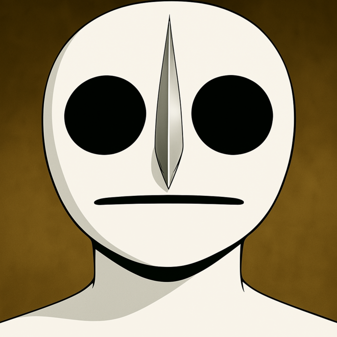 頭が別なものになっていて、不気味な顔してるそれは両目が異常なまでに大きすぎて、鼻も突き出た刃みたいになって口はただ一線が左右から伸びているだけで、胴体も両手足もすべて白一色で統一されたその裸になって乳房だけが乳首なくなったただの硬い風船みたいな形になってるその姿はーー!?
