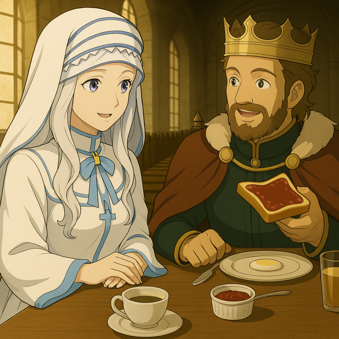 「殿下と大臣だけじゃなくて、私までご朝食にご招待して頂き誠に恐縮でございます、陛下!」