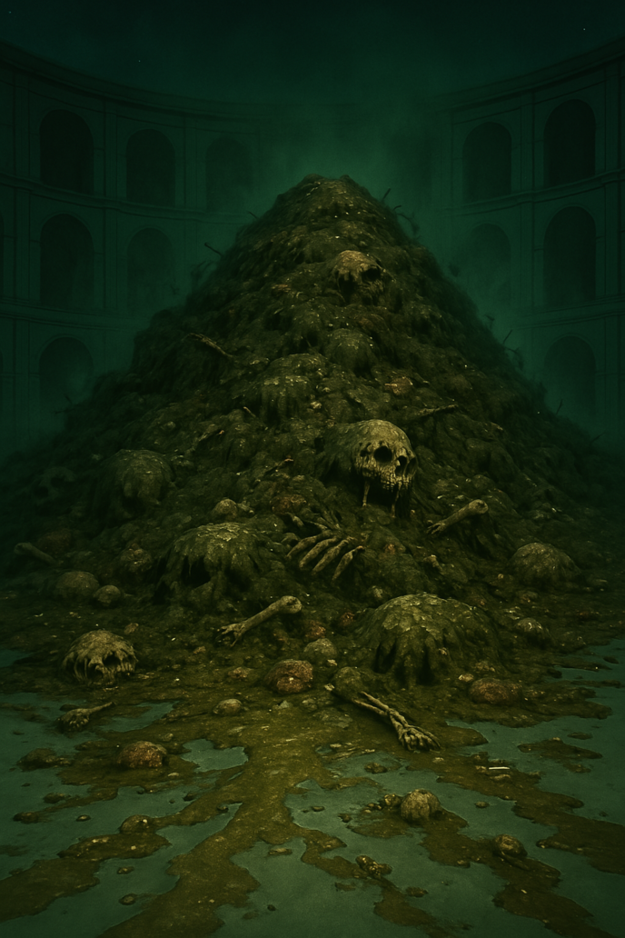 俺の眼前には、様々な汚染した、というより、地獄の底のような様々な汚物や腐敗した汚れ切った煤、排泄物と嘔吐物や様々な汚い動物の残骸と屍と骨が累々と重ね重ねに盛られており、あの城の近くからこっちまでとを埋めつくしてきたその大量な不潔な物質が異臭を放ちながら、俺の脳裏も心も視線も嗅覚も味覚も心や魂までをすべて犯してくる異質なる悪寒がこの場を包み込んできたからだ―――!!!