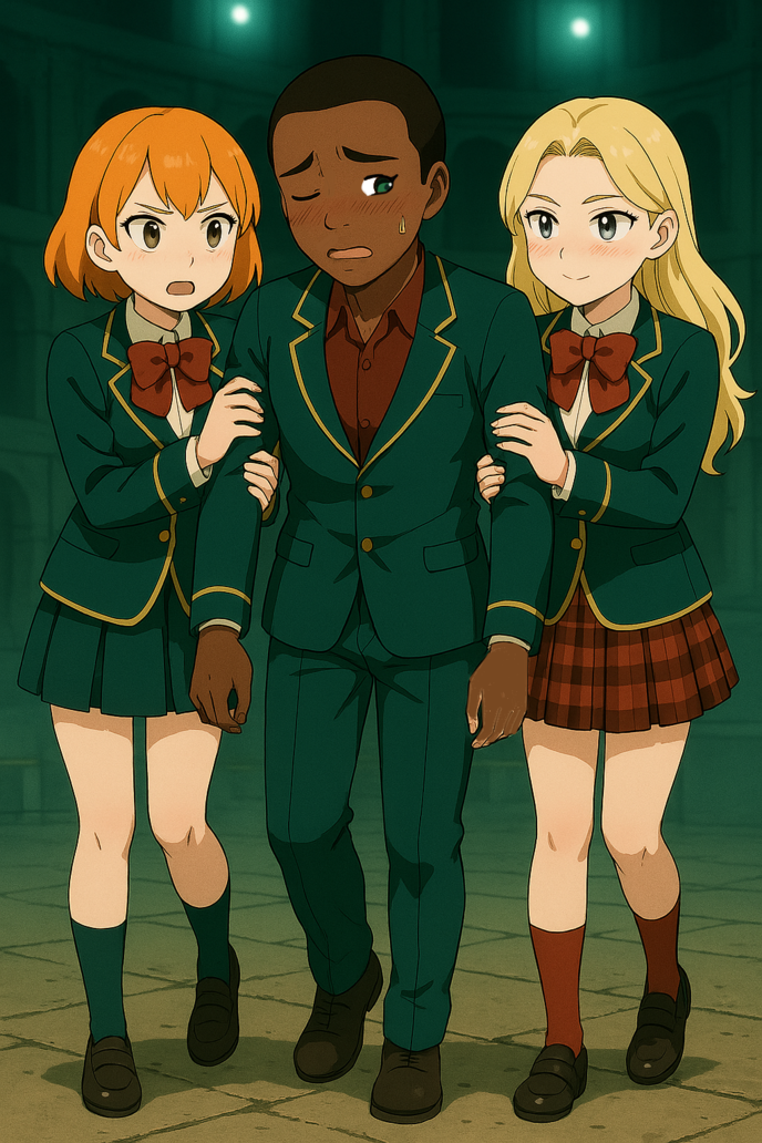 心配してくれてるジュディ―、不機嫌そうにしながらもどこかまんざらでもなさそうに朱が差してるオードリーに腕を力強く握り込まれてる俺は場の雰囲気に流されるがままこの子達と一緒に保健室へと傷だらけの身体を保険医先生に診てもらいに行くのだった。