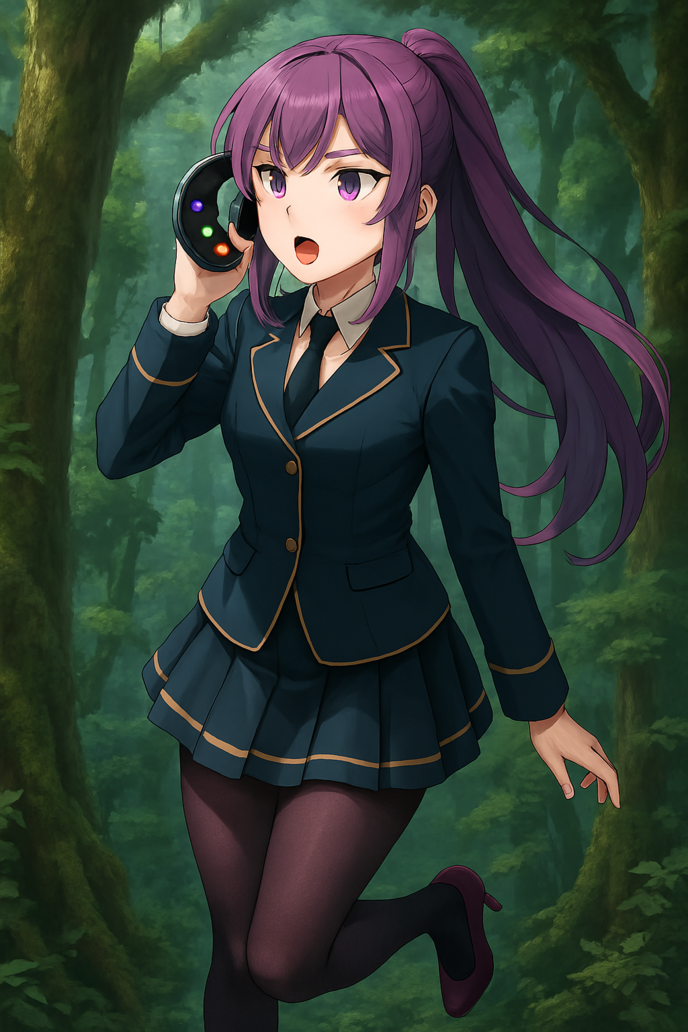 その森の奥に、上空を浮遊して下の木々を見下ろしながら魔道通信機を耳に当てている人物がいる!