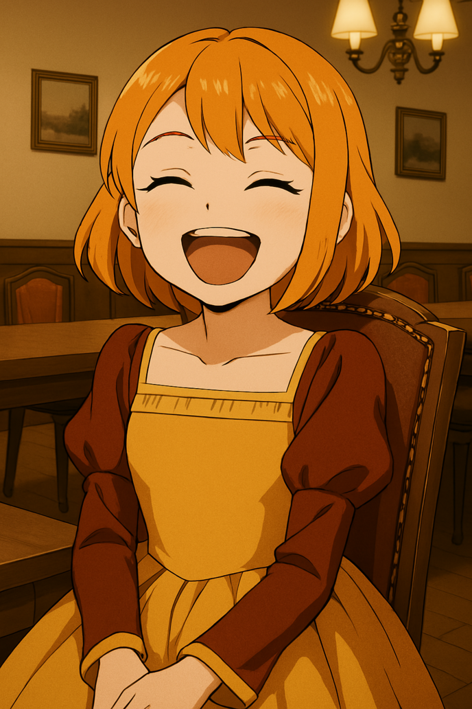 「あはっはあ!そ~!ええ、そうですよ、ジェームズさん!あはははぁはあ~!だって、~オードリーさんもヒルドレッドさんもどっちも張り合いしようとしてたから、それが可笑しくて、つい笑い出しちゃってるんですねー!あ~はははあ~はは!」