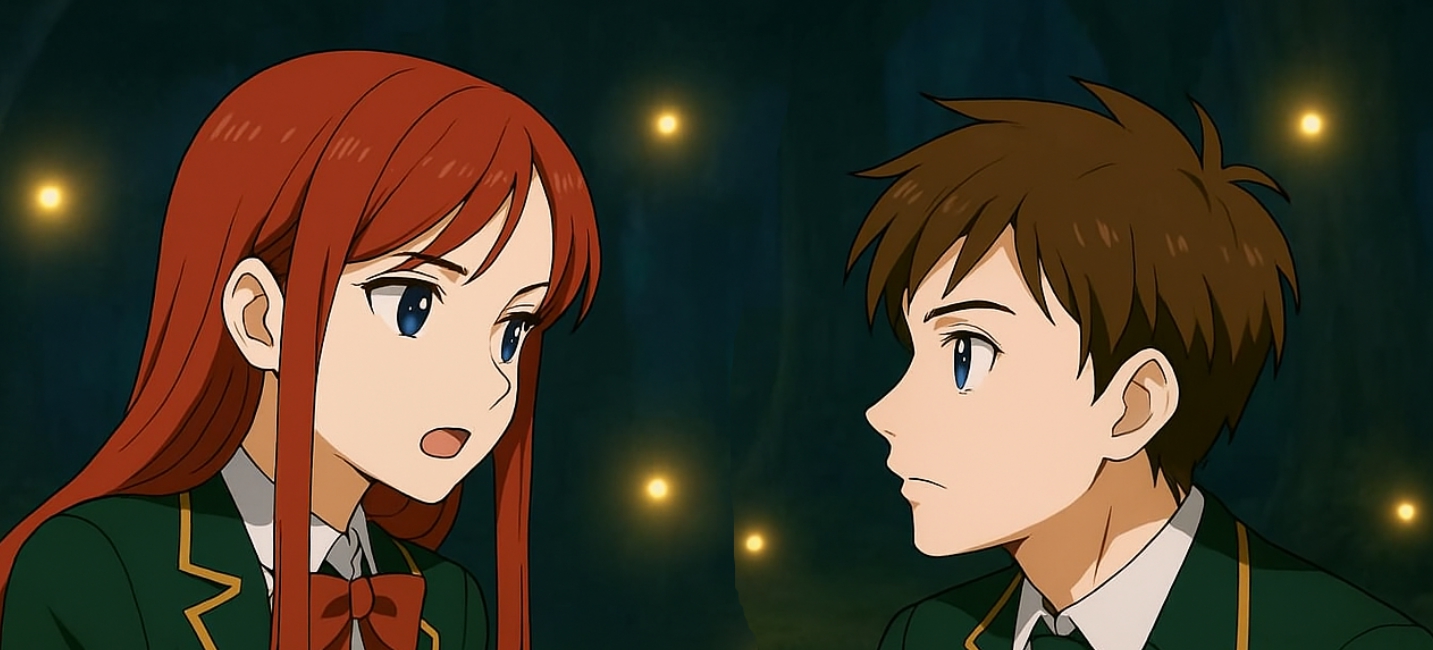 どうやら、明日の授業がある平日の生活に戻るため、既に学院の敷地内に帰ったジェームズとシャルロットが夜の時間に、【静寂の霊群森】の中にいるようだ。