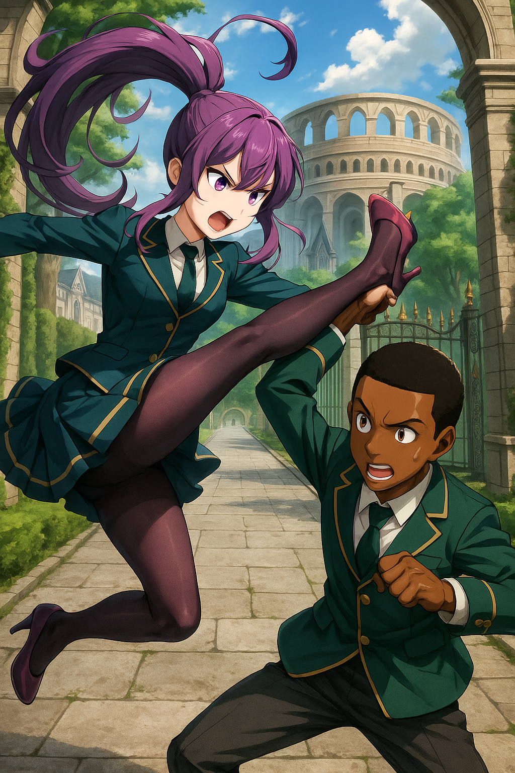「如何にもだぞ、南蛮人少年!アタクシこそ【純粋なる淑女研鑽会】 が会長、クリスティーナ ・フォン・イルレッドノイズ、デス。先ずはさっきの無礼を働いたジュリア―クンを詫びるが、ソもそも男であるキサマと後ろのへらへらしそうな優男こそこの伝統ある学院にいるのがいけないんデスぞー!デ、今回で会うのは初めてだが、思った以上にひょろっとした体形をしているようだな、キサマ!モっと筋肉質のごつごつとした典型的な黒肌布一枚の蛮族かと思ってたぞよー?」