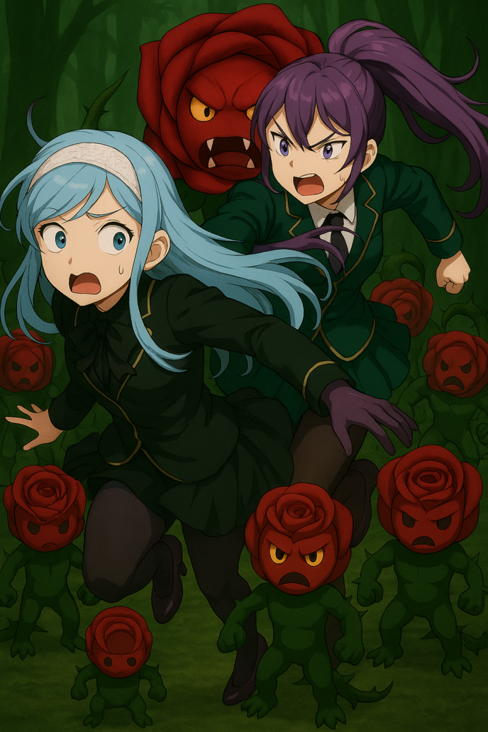 二人に気づいたか、彼女達に注目を変えた『薔薇の兵士』が飛び上がって襲い掛かる!