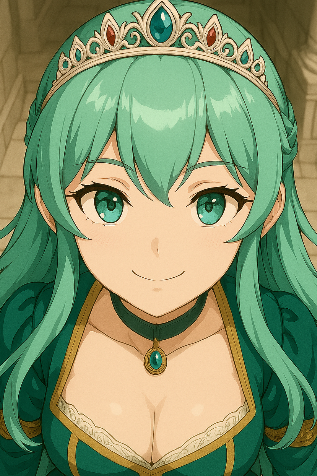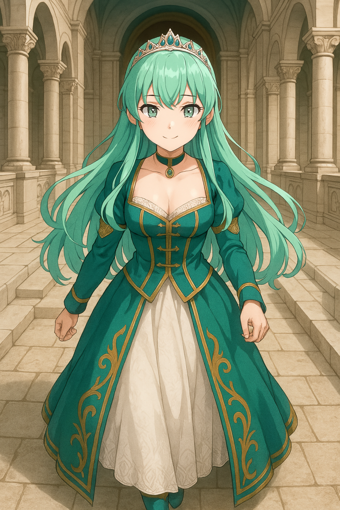 謁見の間にて、ティファニーブルー の色がする髪の毛を持っている上品なドレスを着ていてティアラも被っている高貴そうな身分の少女がレイクウッド国王陛下の前で頭を下げながら、さっきからここへ通されて無言のままだった国王陛下からの会話が始まるのを待っていた様子だ。