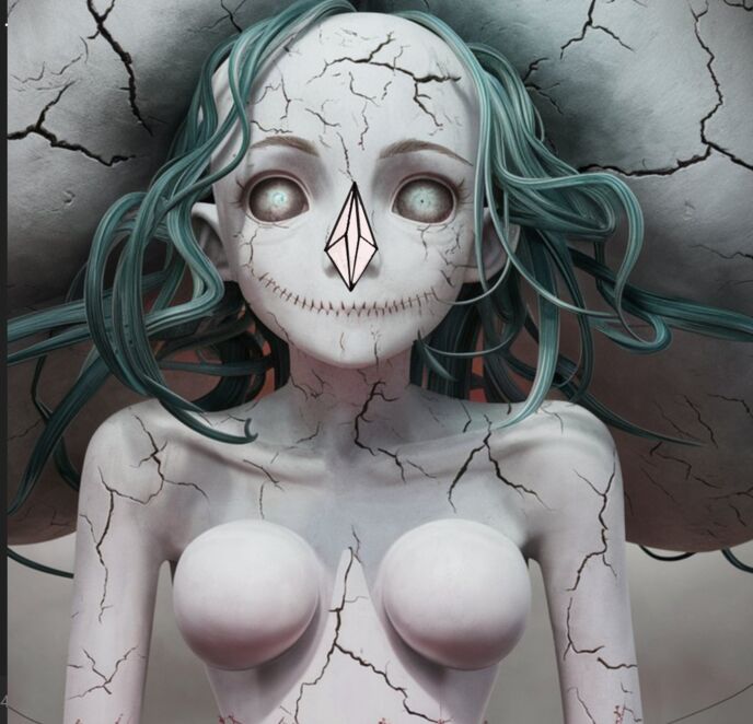 けたたまし咆哮を上げたと同時に、彼女の身体がミルクのように真っ白く変色し、そして服全部を破く勢いで2倍以上も身体が膨らんでいて、そして頭が別なものになっていて、不気味な顔してるそれは両目が異常なまでに大きすぎて、鼻も突き出た刃みたいになって口はただ一線が左右から伸びているだけで、胴体も両手足もすべて白一色で統一された裸な状態になったーーーー!!