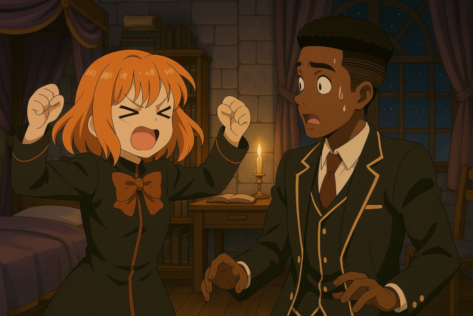 「時間切れですよ、オケウエー様!トンプソン様のお部屋にはもういられない時間帯ですね」