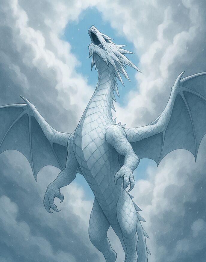 俺達がどれもこれらの三つの優れてる【防御系の精霊魔術】って障壁の中にいる限り、自身の吹き掛ける【氷の大規模ブレス】がまったく俺達に届かないことを察したか、今度もまた賢くブレスを吹き掛けるの止めて、そしてそれだけじゃなくて町への破壊行為も凍りつける作業もやめて、今は天高くへと飛び上がってる様子なんだが.........