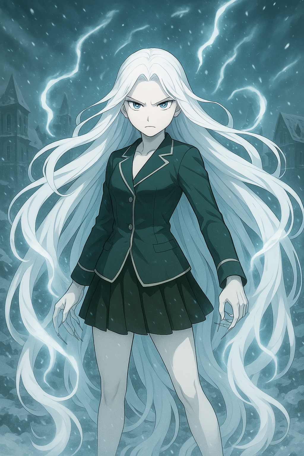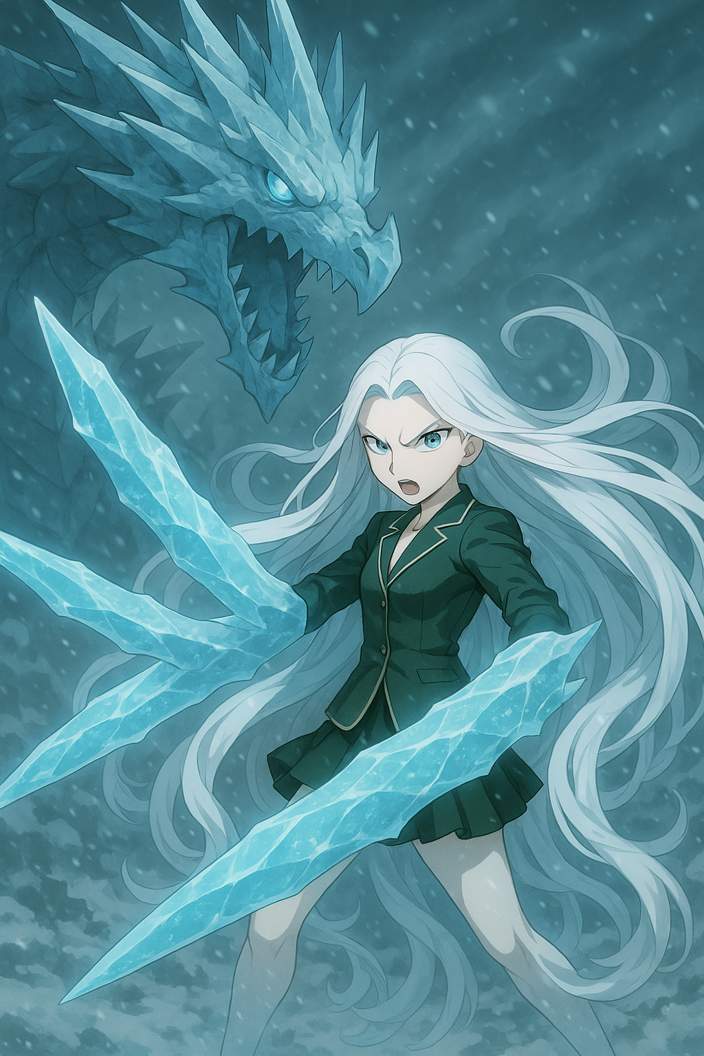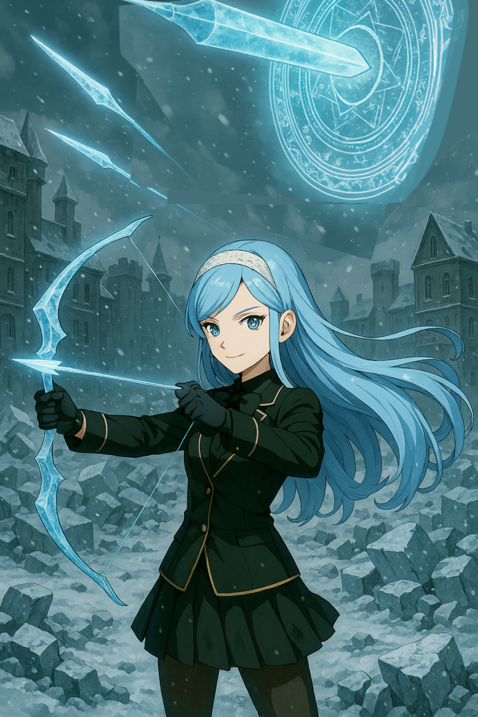 元々金髪だったオードリーの髪の毛が真っ白く塗りつぶされ、元々長髪な彼女の髪が更に足の後ろにまで及ぶ長さに一時的伸ばされ、そして元々白い肌が更にミルクのように変色していて、爪もちょっとだけ長くなったオードリーが自身の纏っている莫大なる氷結を齎す聖魔力を迸らせながら、鋭い目つきであそこにいる氷竜だけを見据え、そしてー