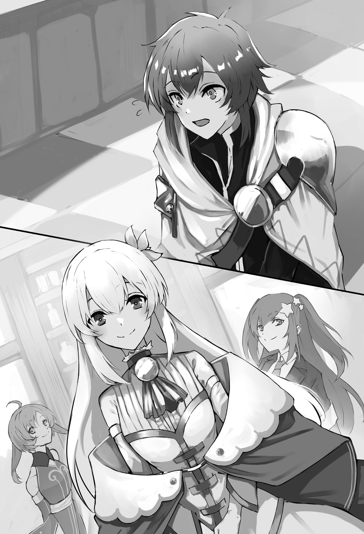 灰色の鎧を身に着けた青年と二人の女冒険者。