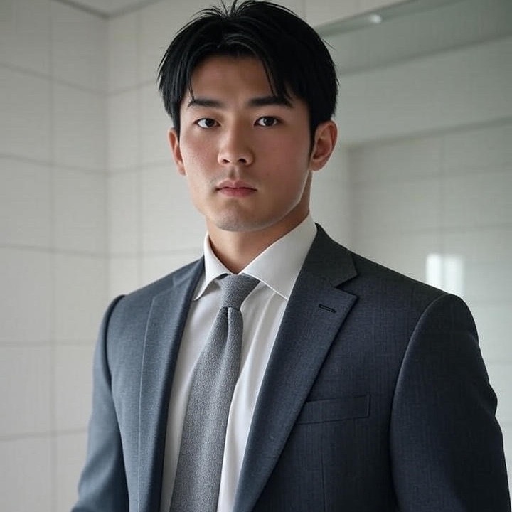 鍵をかけ、スーツの上着をドアのフックにかけてから便器の前のスペースにしゃがむ。