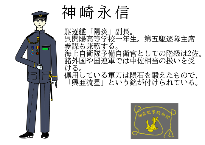 呉開陽高等学校船舶動態保存課教官。実たちを担当し、教官艦である重巡洋艦「鳥海」の艦長も務める。