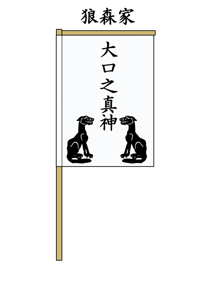 かつては、分家用に狼の図柄が違う旗指物も存在した。