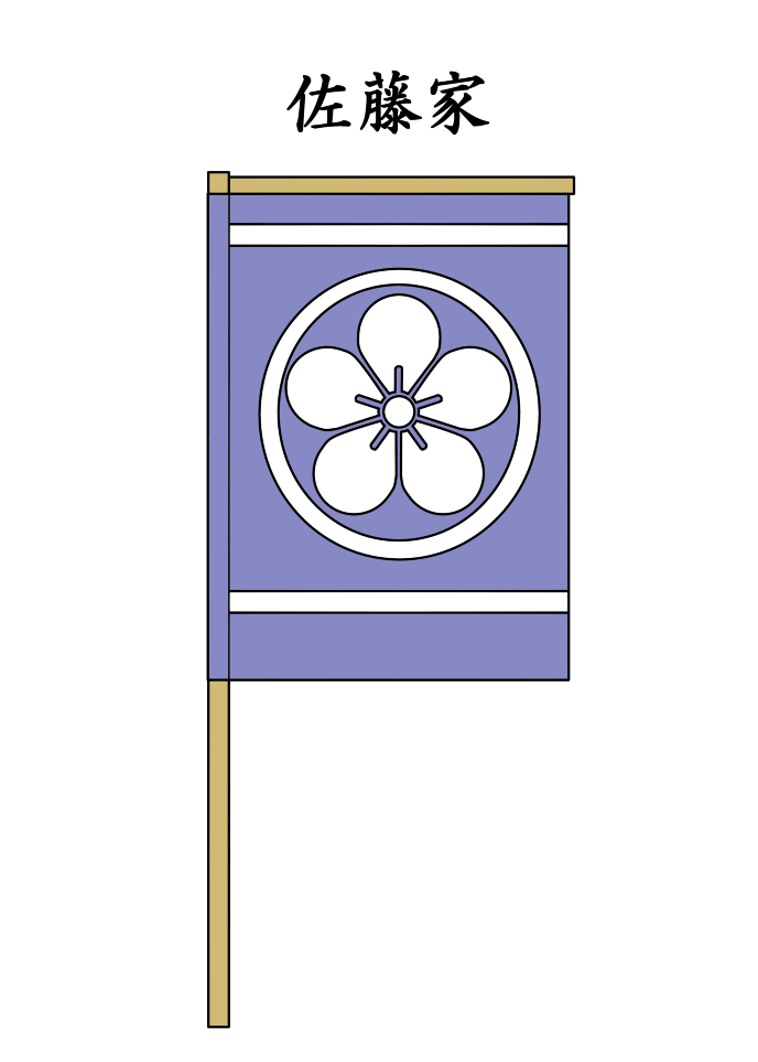地色の藤色は「佐藤」の「藤」。丸に梅は佐藤家の家紋。