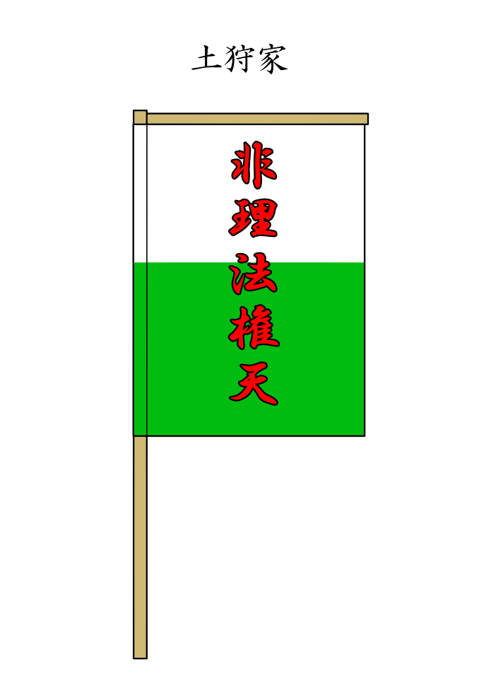 上が白、下が緑に赤で「非理法権天」と書かれている。