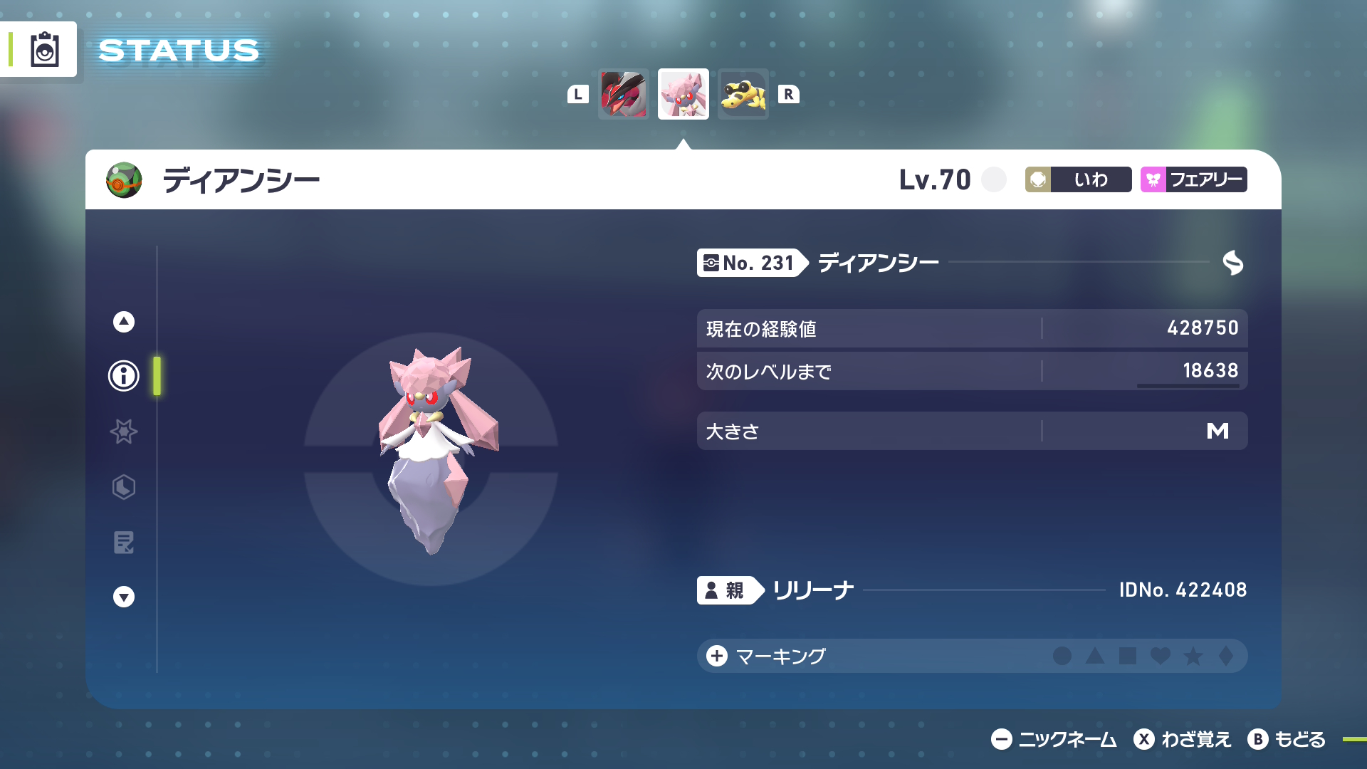 ちなみにディアンシーの捕獲確率はかなり低いと思われます。