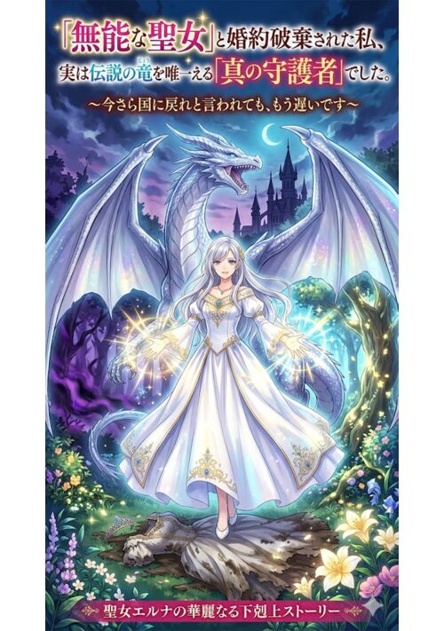 聖女として国を支えてきたエルナは、第一王子カイルから非情な婚約破棄を言い渡される。隣には、魔力値を偽装して聖女の座を奪った男爵令嬢の姿が。