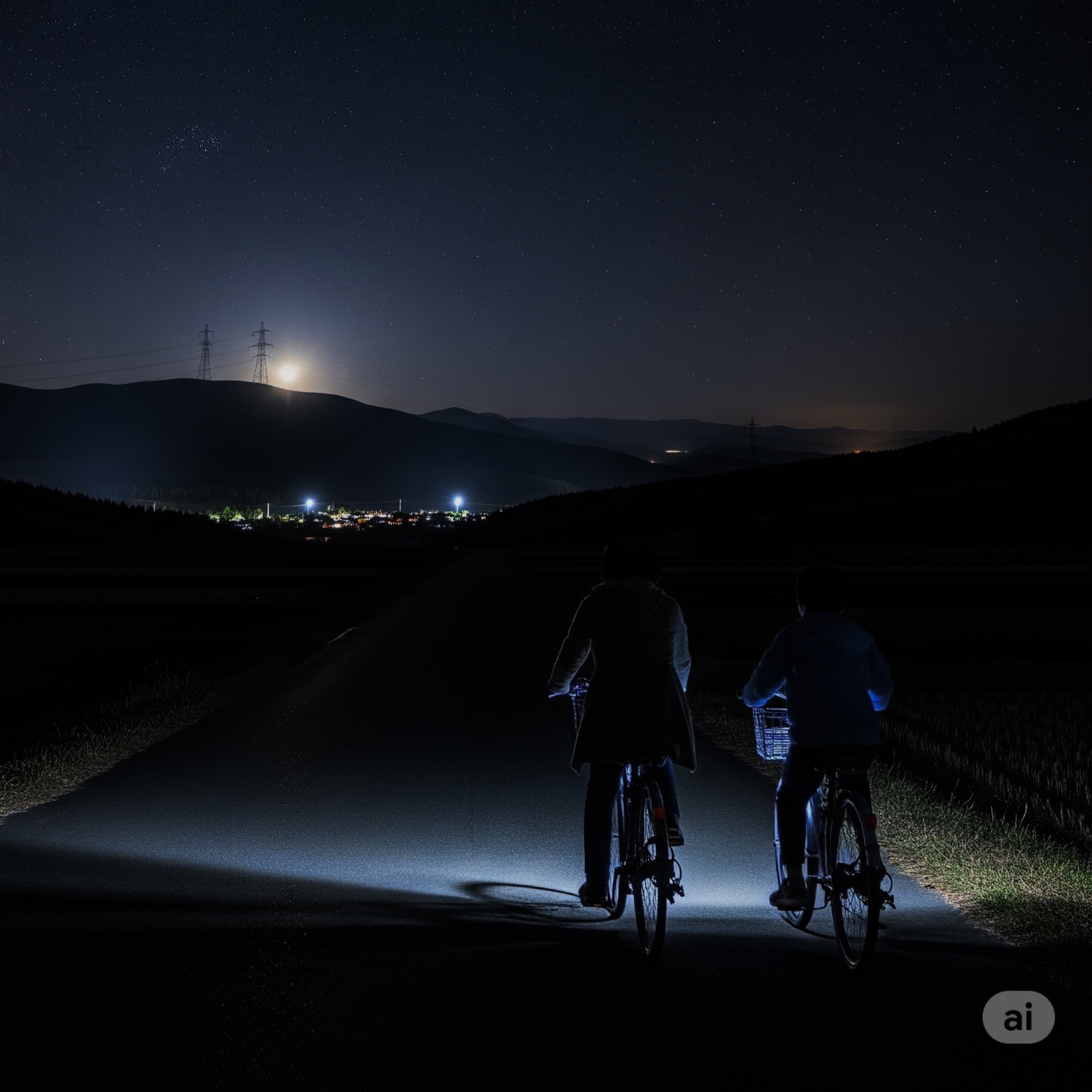 僕は除夜の鐘を鳴らすお寺へと向かう途中、たくさんの星々がぴかぴか光る夜空を…田舎町をぐるりと囲む山々を…遠くまで広がる暗い田園風景を…月明かりを鈍く反射している向こうの山の高圧電線の鉄塔を…遠くにぽつり、ぽつりと見える小さな街灯を…僕はそっと、いつまでも無心で眺めていた。