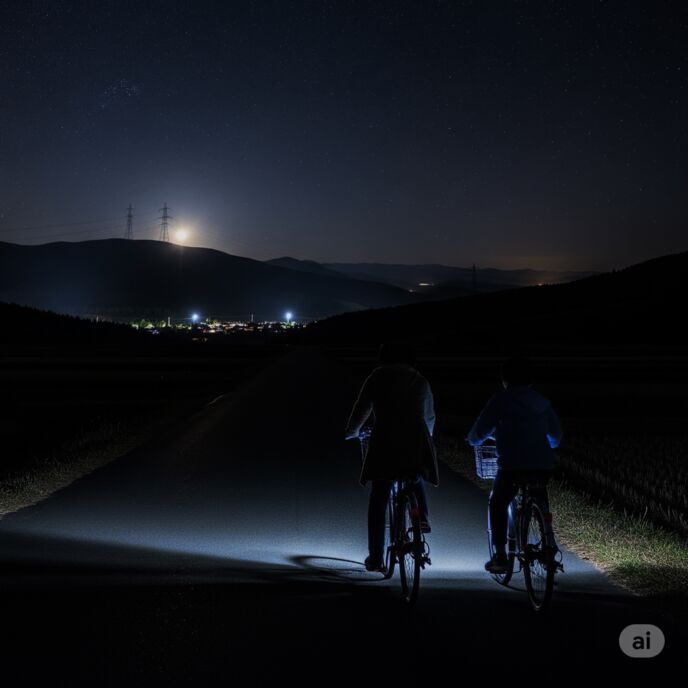 玄関を出て、母さんも僕も自転車に乗り…暗い夜道の中を、2kmほど離れたお寺を目指して走っていった。
