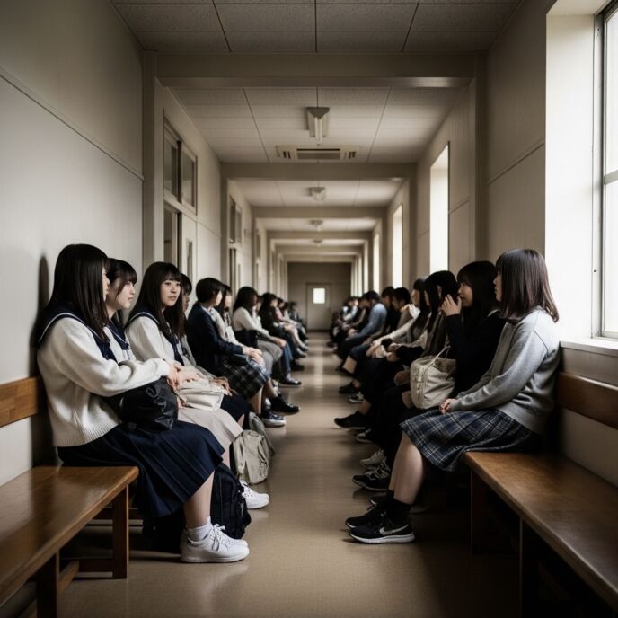 騒がしかった廊下が徐々に鎮まりはじめ…女の子たち全員の、刺さるような視線が僕らに集中してる…。