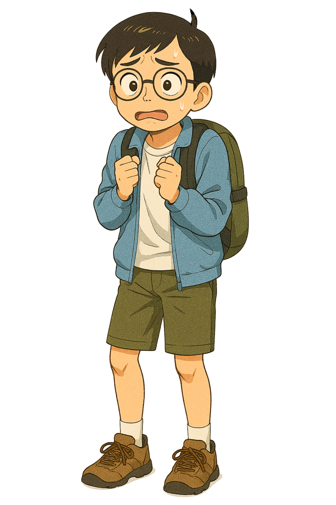 勇気 日光に遠足に来た男の子。青い石を拾い伝説の世界に招かれる。