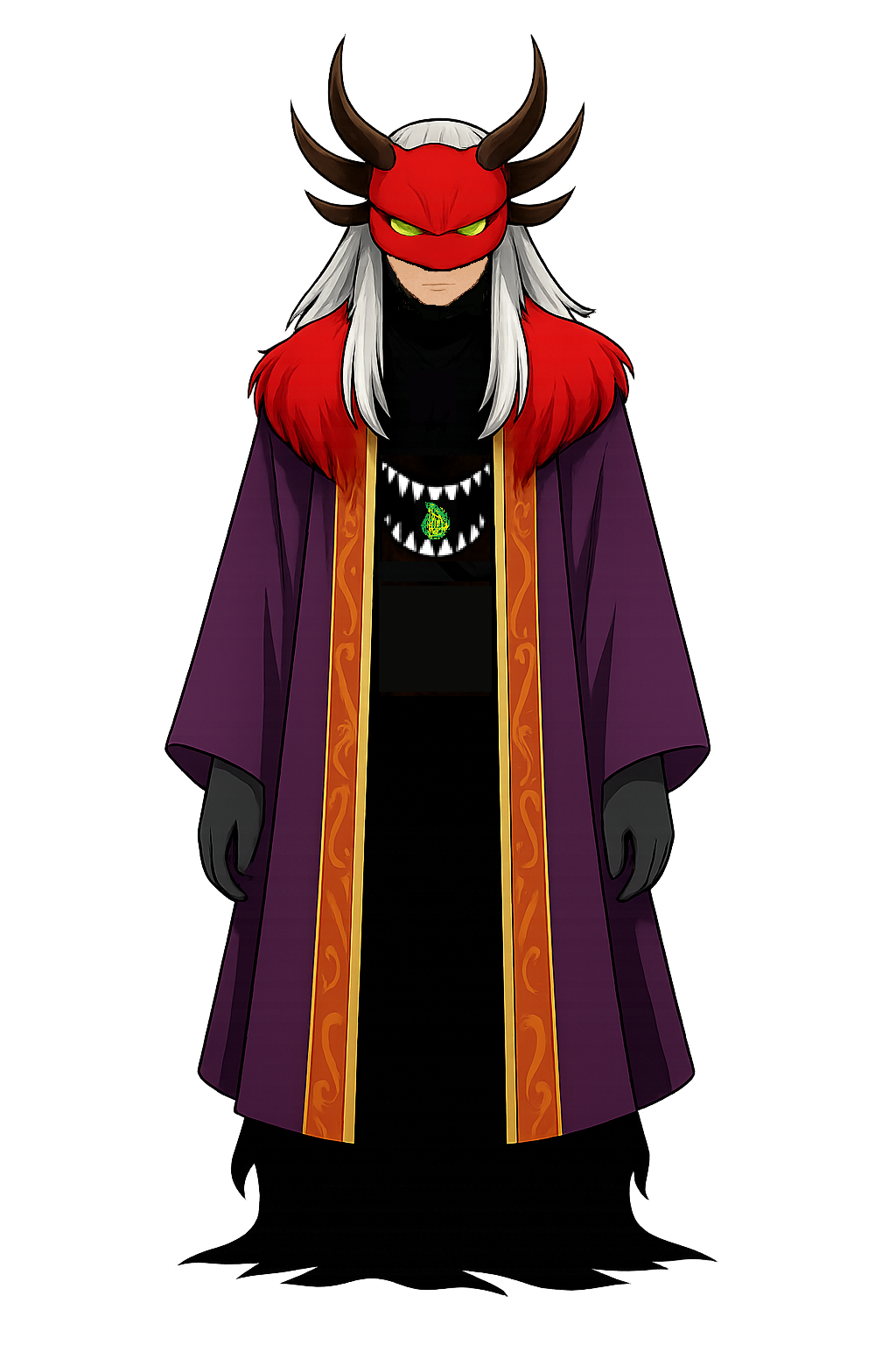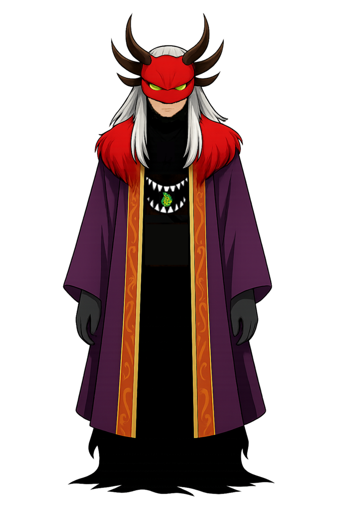 • 服装/持ち物:赤いファー、紫のコート、首回りから足元にかけ神官のような金の刺繍