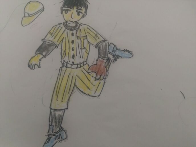 11号は中学・高校と野球部だった。それをお客様に告げるとユニフォームを着てくれとよく言われる。ピッチングフォームをとる11号。帽子を飛ばしながら