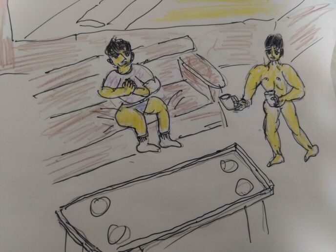 朝、俊介より先に目覚めた11号はプレイルームに備え付けのコーヒーセット(インスタント)を使ってコーヒーを淹れた