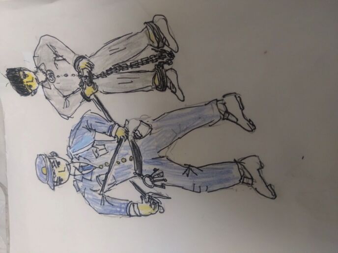 挿絵は調教師の制服とブロンズクラスの奴隷ボーイが連れて行かれる様子です