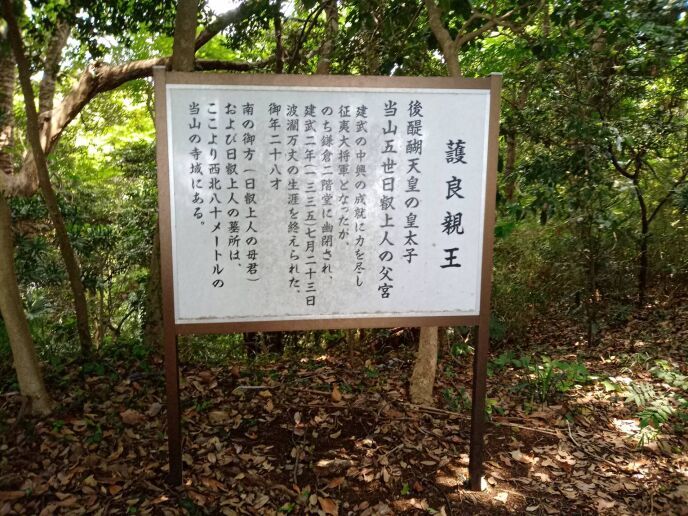 結構危ないのでサンダルは厳禁。トレッキングの格好が良いでしょう。頂上にある親王の供養塔は立派立派!もうちょっと綺麗ならなお良いのですが。説明の看板は親王推しが行き過ぎていて。なぜか後醍醐天皇の皇太子扱いでした。皇太子なら処刑されてないよ…。