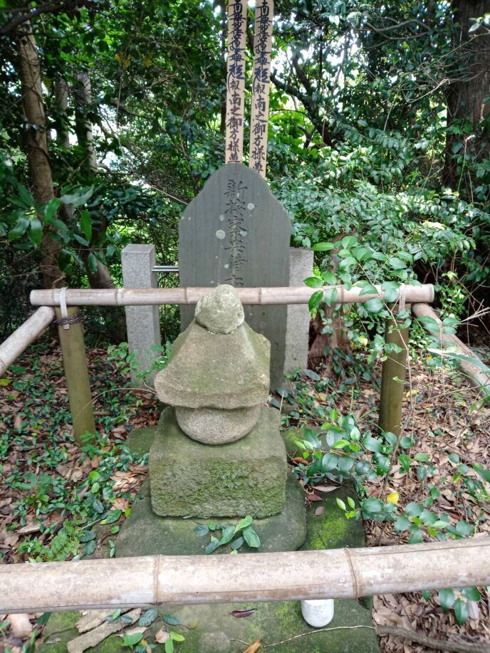 足場が悪い階段を下りて、今度は左上を登ります。階段無し。手すり無し。落ちたら死ぬ。そんな獣道風の上り坂を苦労して登りきると、南の方の供養塔と子の日叡上人のお墓がありました。