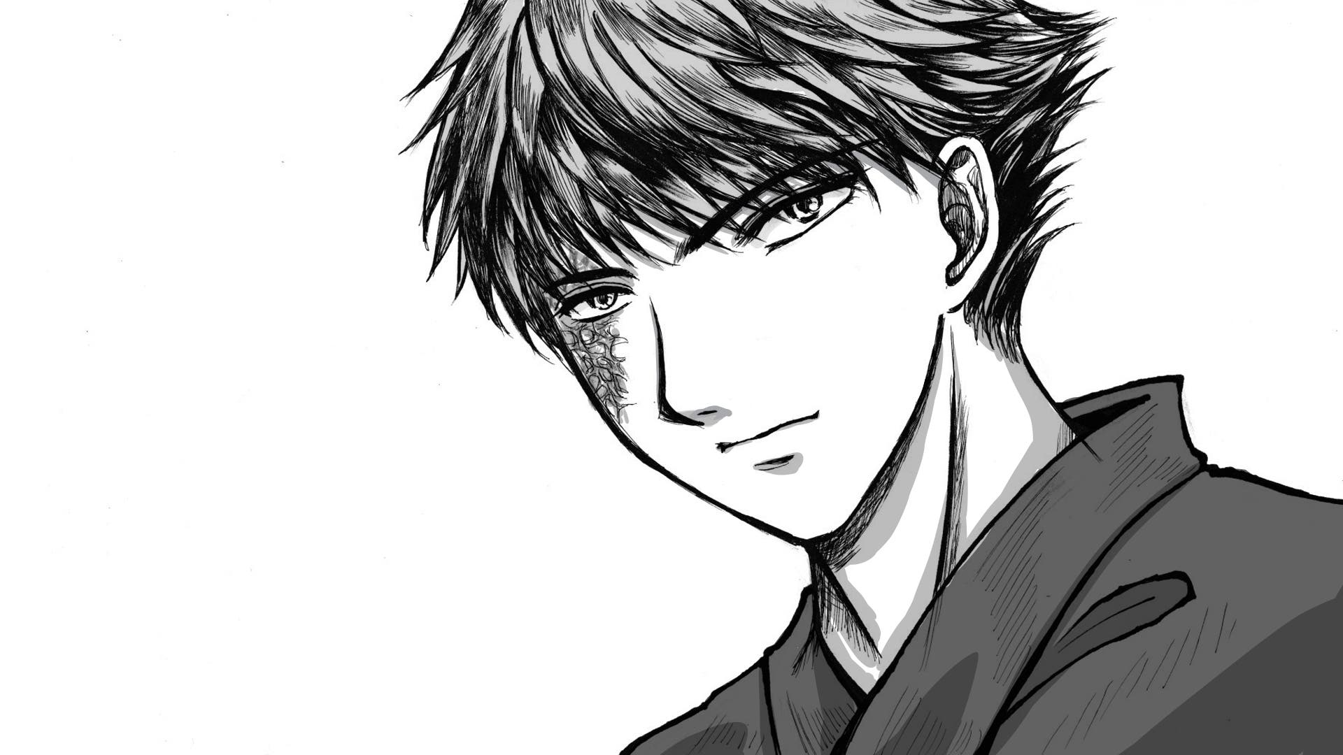 かろうじて目にかかってはいないが、右目下の泣きぼくろを残し髪の生え際あたりまでを傷が広く覆っていた。