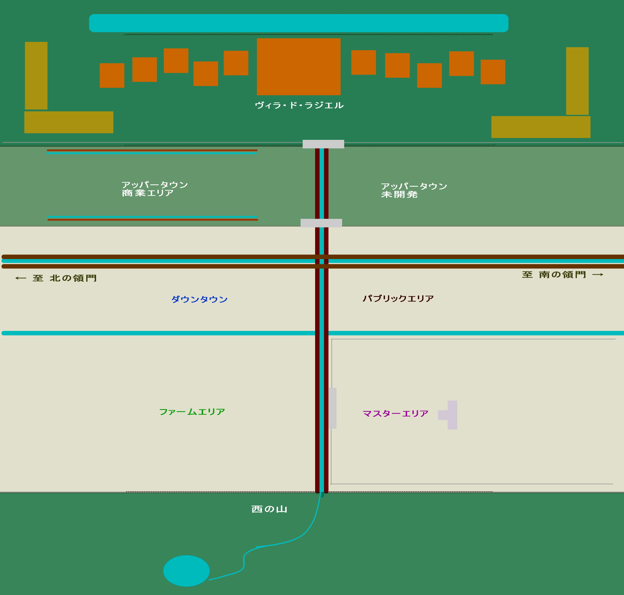 ここに無い左右(南北)は未開拓でまだ延々と荒野が続いています。