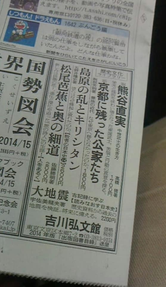 しおりを挟む朝、最近 悪名高き朝日新聞を読んでいたら、一面下部の新刊案内に「熊谷真美(まみ)」の文字!