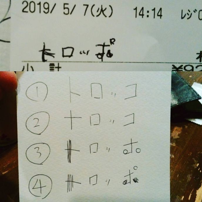 が、今回のレジの女性は、何を思ったか、「ト」を「ポ」に、どうにか修正しようとした(②)。
