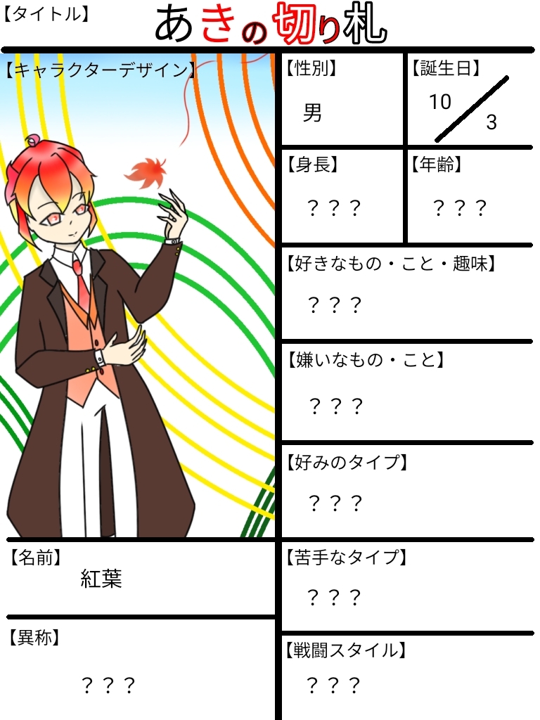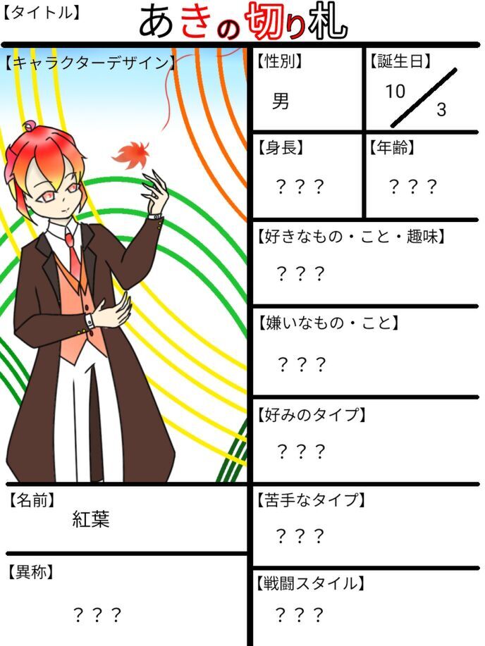 「では、自己紹介を致します。僕の名は一華風希と申します。貴方様の名は紅葉。秋の象徴とも言える樹木の名ですね。」