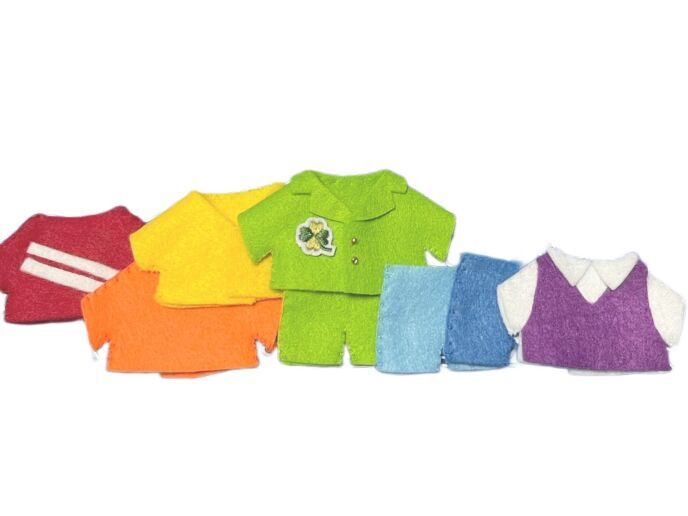 ボクはお洋服を床に1列に並べてみたよ。