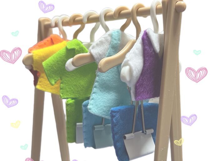 「そうだ! お洋服はハンガーにつるさないとね。よいしょっと」