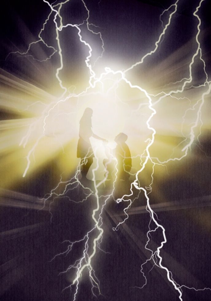 その瞬間光の渦がさらに大きく巻き起こり、トンネルが揺らぎ、女と王様を包み込み、天高く舞い上がっていた。