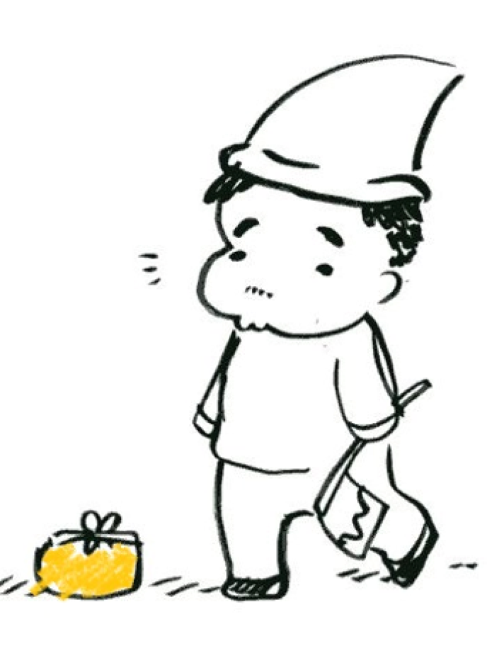 「おかしいなぁ。おらのさいふ、どこに落としたかな?」