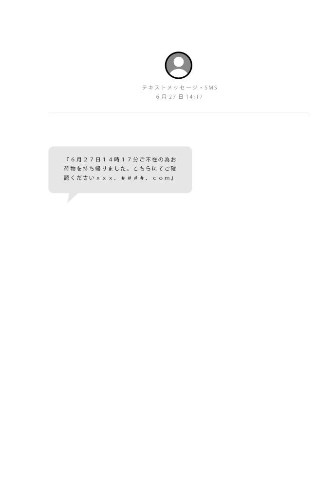 そもそも私は今日、朝からずっと家にいて、インターフォンは一度も鳴っていなかった。なのに『ご不在の為お荷物を持ち帰りました』、なんてメッセージを送られても、焦りすらしない。